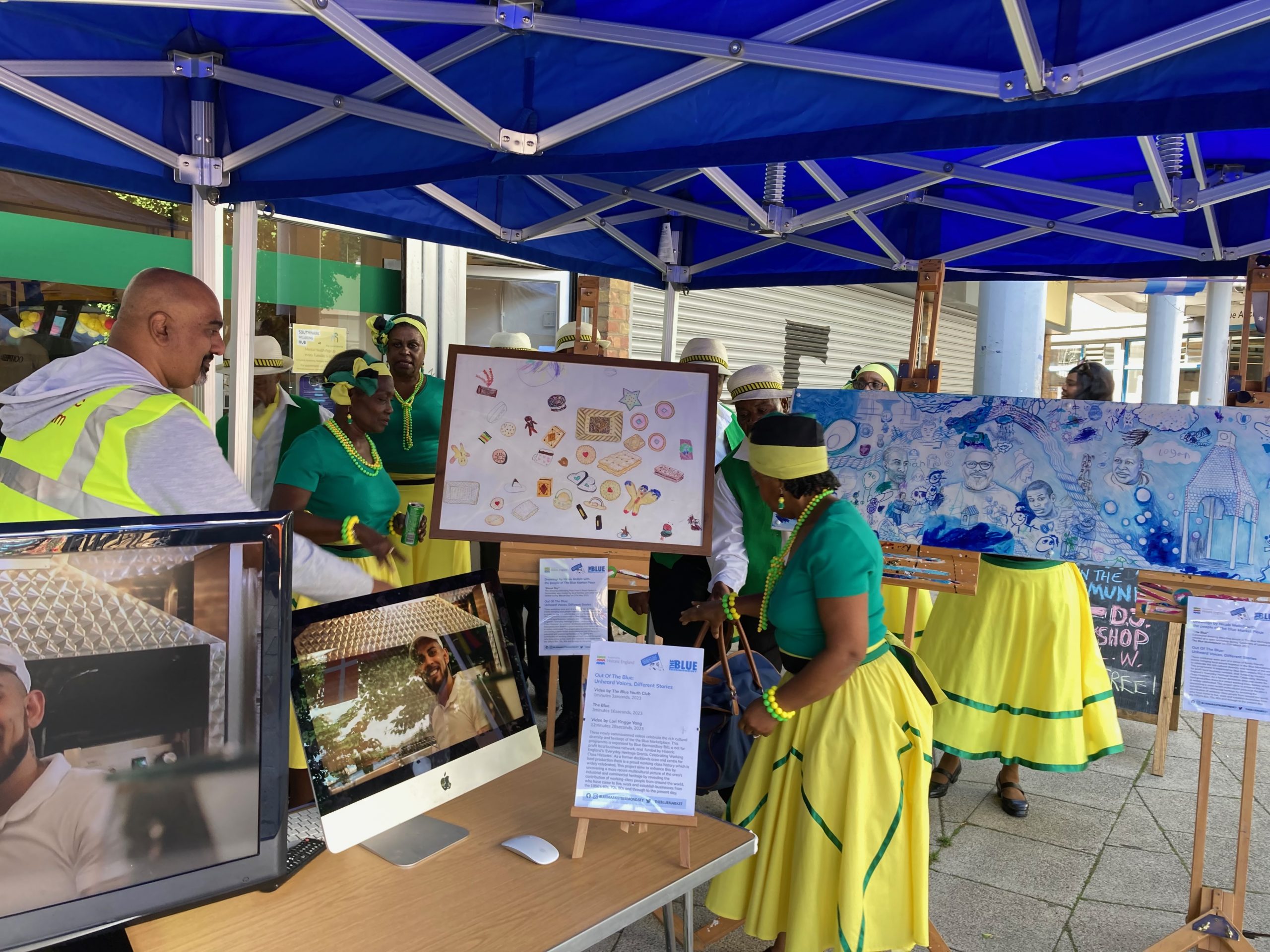 The first pilot series of event took place weekly May – July 2016. A new series was commission in November – December 2021 to re-activate the Market following closures for COVID-19 and ‘Made in Bermondsey’ regeneration works. In 2022 a follow-up series was commissioned as part of the Unheard Voices Hidden Histories project funded by Historic England which aimed to amplify awareness of the diverse heritage of the area through seasonal events mixing international cultural influences – I worked with Blue Bermondey BID and the new market management team at Big Local Works to co-ordinated a busy on-going schedule of events including Greening The Blue, St. Patricks Day, St George Around the World, Castellers of London, Biscuit Day, Okinawa Day, Unity in the Community and UMAT Let’s Make Music and Dance Galas. A further 2023 season of event August – December 2023 was funded by Charterhouse including Bicycle Day, Open City Weekend, Pumpkin Carnving, The Blue Winter Fair and Christmas Wreathmaking. A 2023 program is underway funded by Blue Bermondsey with many events returning as regular annual fixtures.