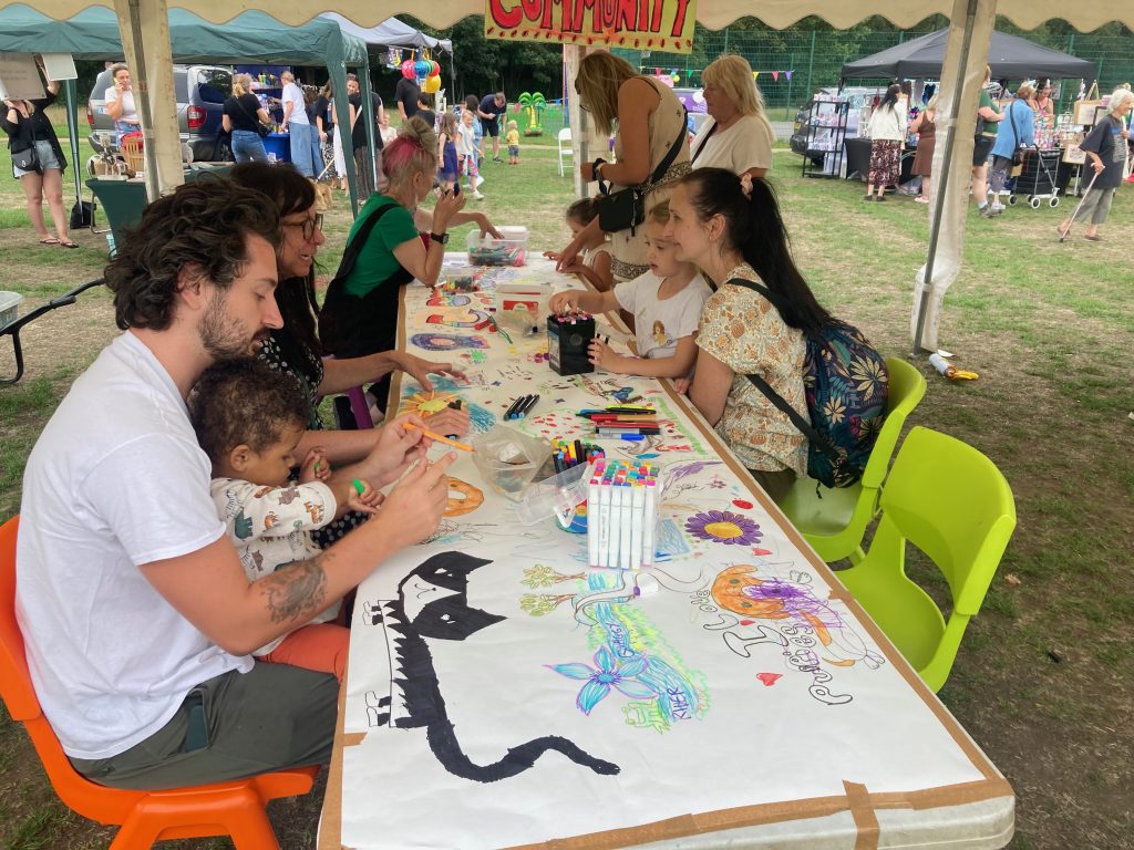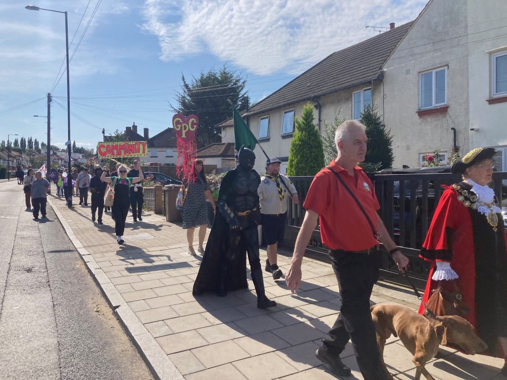 This year’s Carnival theme was ‘Community’ and features the parade, market, dog show, games and arts and crafts tent. Thank everyone for joining in! Flag made by Grove Park Youth Club. Special thanks to Alma and our youth volunteers